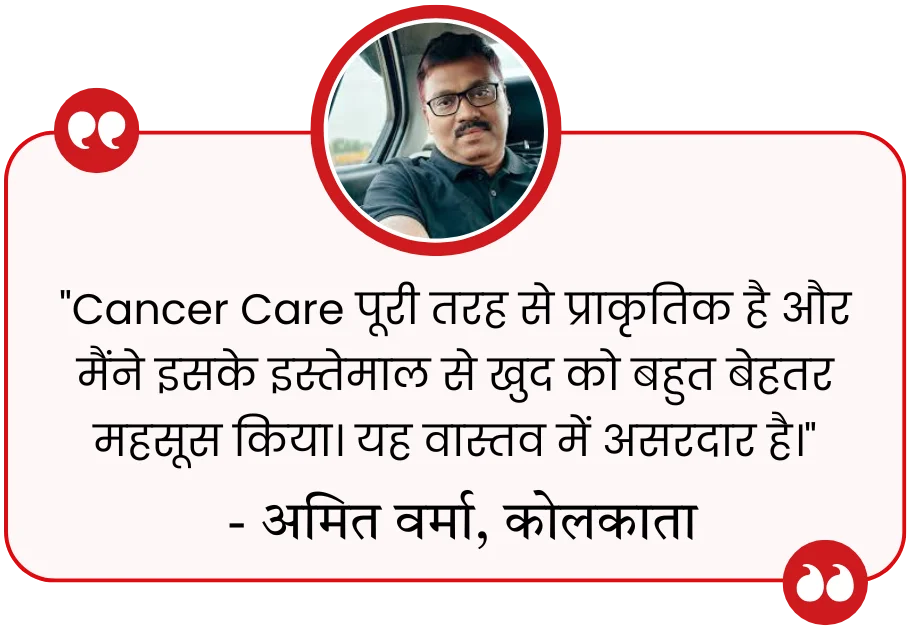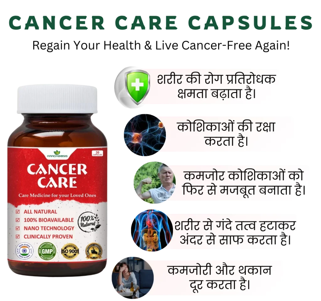 Cancer Care एक आयुर्वेदिक प्राकृतिक समाधान है जो शरीर को अंदर से मजबूत बनाता है और कैंसर से लड़ने में मदद करता है।
